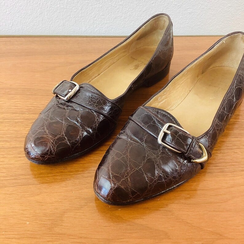 Vintage 1990s Ralph Lauren Alligator Texture Shoes