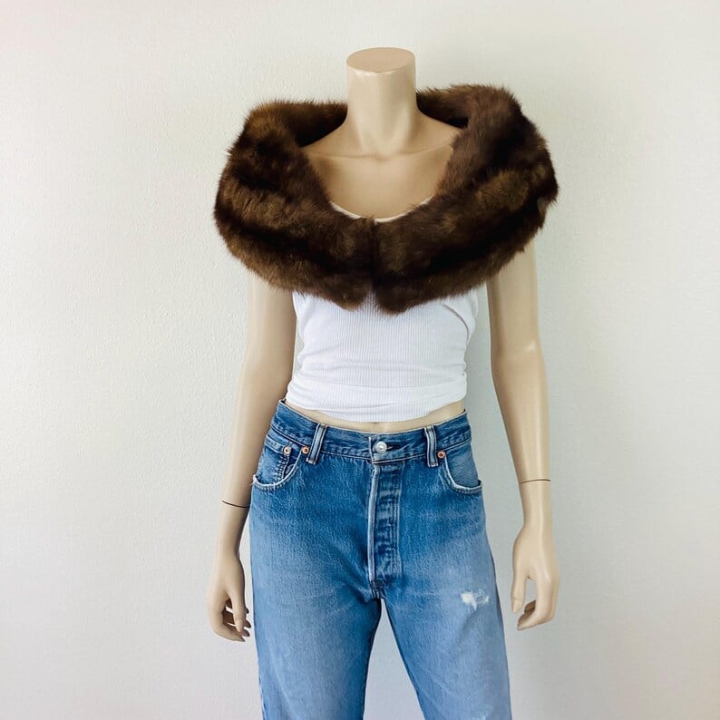 Vintage 1950s Sable Mink Fur Stole / Shoulder Wrap