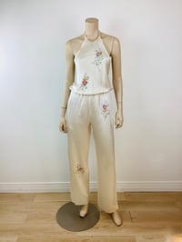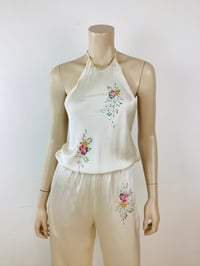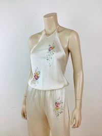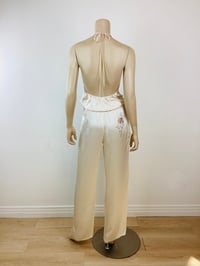 Vintage 1970s 30s Style Silk Charmeuse Lounge Halter Jumpsuit