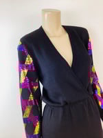 Vintage 1980s St John Knits Metallic Paillettes Black Sweater Knit Dress